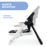 4 diferentes ajustes de altura para se adaptar ao crescimento do seu bebé e diferentes tipos de mesas.