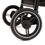 O sistema de suspensão nas quatro rodas e os pneus EVA garantem um passeio suave, absorvendo impactos em qualquer tipo de terreno. Com o travão de engate rápido de 1 toque, o carrinho oferece total segurança, enquanto a forma de fechar com uma mão permite fechá-lo rapidamente e eficiente. Além disso, quando fechado, ele fica em pé sozinho e pode ser carregado facilmente com a alça de transporte.
