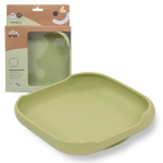 Prato de silicone prático com ventosa para colar em qualquer superfície e evitar acidentes. O seu design e formato foram concebidos para ajudar as crianças na sua iniciação à comida. Graças à sua composição, é muito fácil de limpar e resistente. Não reproduz bactérias ou fungos, pois é feito de silicone. Livre de BPA, PVC, Vinil, Chumbo e Ftalatos. Pode ir à máquina de lavar louça.