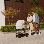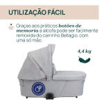 UTILIZAÇÃO FÁCIL: Graças aos práticos botões de memória, a alcofa pode ser facilmente removida do carrinho Bellagio, com uma só mão.