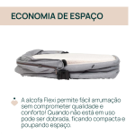 ECONOMIA DE ESPAÇO: A alcofa Flexi permite fácil arrumação sem comprometer a qualidade e o conforto! Quando não está em uso, pode ser dobrada, ficando compacta e poupando assim espaço. Além disso é super leve: pesa apenas 4,4 kg.