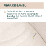 FIBRA DE BAMBU: Os tecidos frescos e respiráveis em fibra natural de bambu mantêm o bebé fresco. Este material é particularmente adequado para o contacto com a pele do bebé porque ajuda a manter uma temperatura corporal adequada.