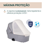MÁXIMA PROTEÇÃO: A capota é extensível, hidrorrepelente e proteção UV50+. Tem uma bolsa com uma capa que se extrai e cobre a parte frontal da capota para proteção adicional. Pode funcionar também como rede mosquiteira, graças às suas redes laterais.