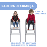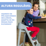 Permite que a criança esteja à mesa com toda a família, até nas mesas de cozinha mais altas