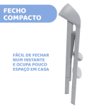 A cadeira fecha-se de forma prática e fica compacta para se arrumar facilmente quando não estiver em uso.