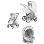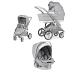 Integra diferentes materiais naturais que proporcionam um ótimo isolamento térmico e acústico, ideal para o bem-estar do recém-nascido. A capota extensível e com pega integrada, a viseira com inclinação regulável e a janela com rede para ventilação tornam este produto versátil para qualquer tipo de passeio.